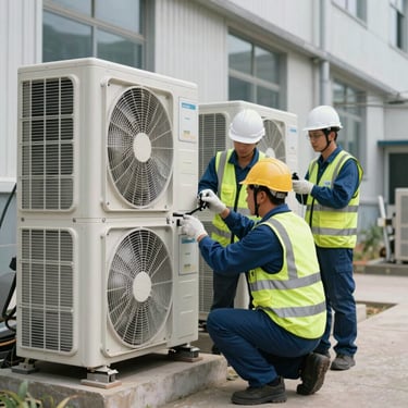 Instalación de aires acondicionados, servicios eléctricos, plomería y mantenimiento general.